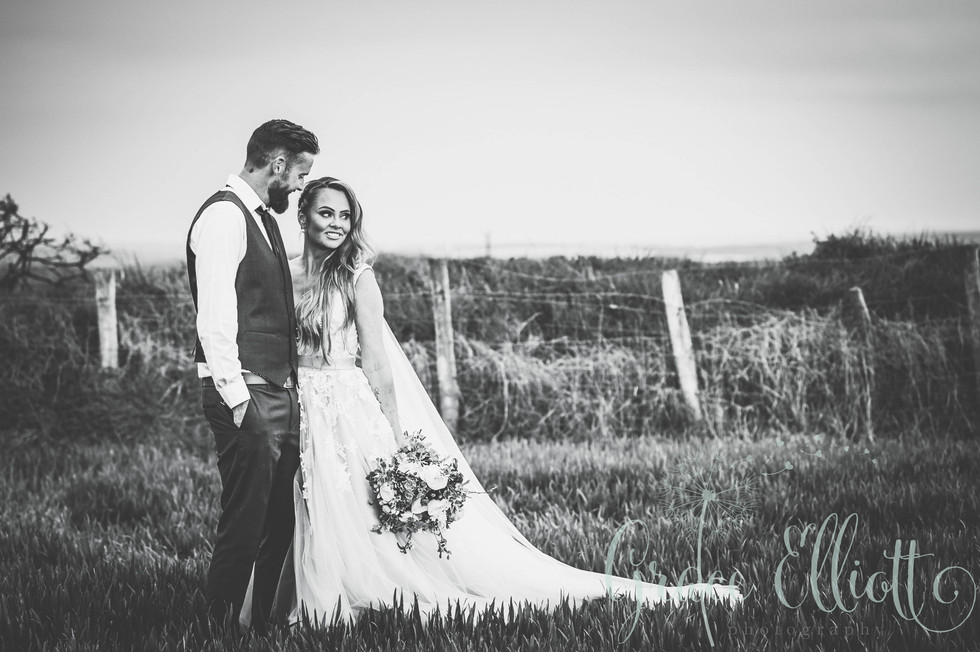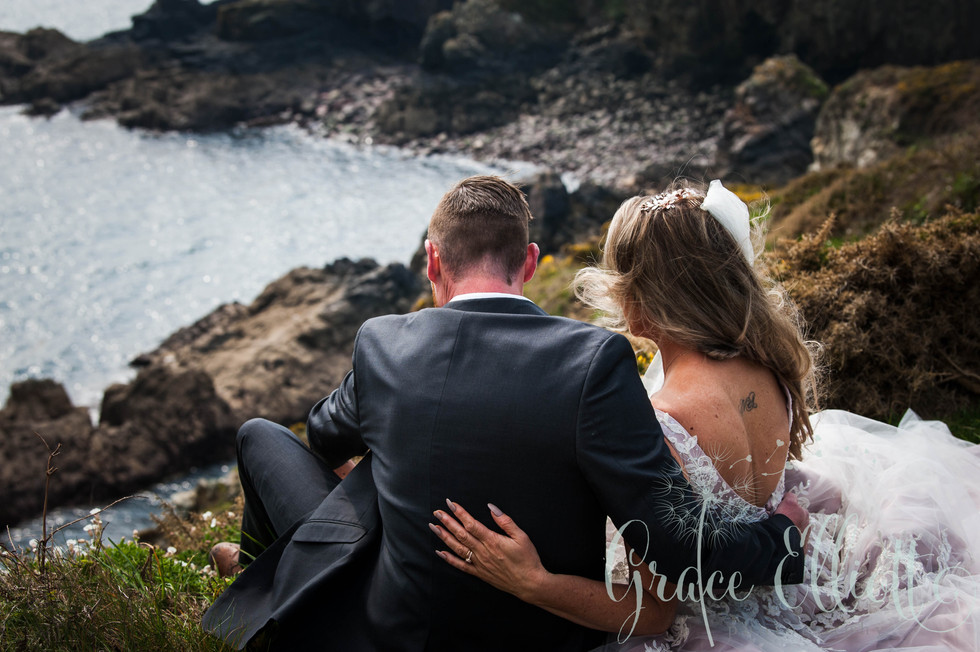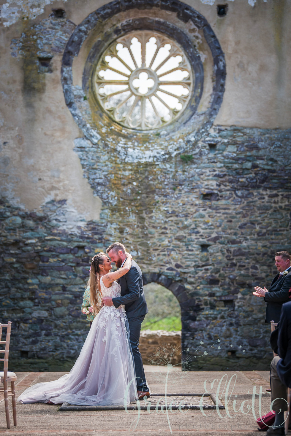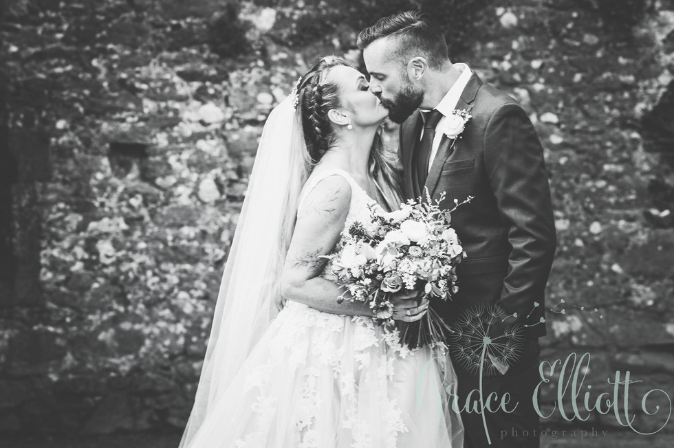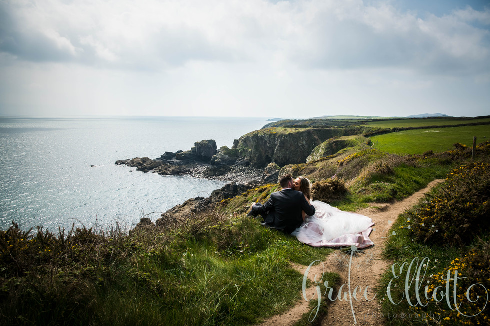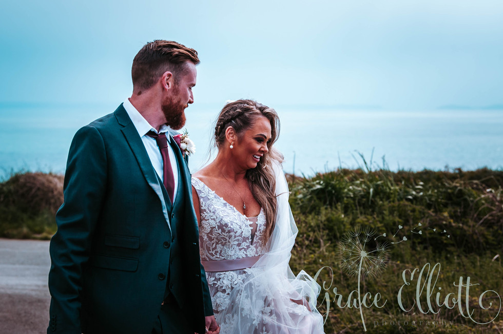 I kicked off the new season with this beaut of a wedding couple. It's been a very long awaited day and the last of my postponed covid weddings. Rachael and Sam have travelled all the way from New Zealand to get married in Pembrokeshire, where Sam's originally from and where most of his family reside. Both the Bride and Groom got ready at Crug Glas with Flowers by Annabel delivering the beautiful bouqeuts and buttonholes. For the ceremony they chose Bishops Palace, a ruin in the grounds of the Cathedral in the very quaint city of St David's, with the surprise of Rachaels mum being the celebrant. Rachaels daughters both confidently took part in ceremony and had big parts to play and it was lovely to see the family finally officially have the day they've long awaited and without a dry eye. After the ceremony, Rachael, Sam & I headed to St non's Chapel a mere 5 mins drive to the coast. Sam & Rachael were both so comfortable in front of the camera that I placed them in position and then left them to it. The weather was well and truly on our side although we did have an usual chill to the air. We made our way back to Crug Glas for the reception where it had been beautifully decorated with lovely vintage reddy pink vibes and blossom trees. The food and speeches went down a treat with many people taking part. Once all the official things like cake cutting were complete we headed to the field in the grounds of Crug Glas to get some more couple shots before we lost the light. Rachael and Sam requested dramatic shots and I think I delivered!! I couldn't have been happier with the dark cloud coverage we had and the evening sun bursting through at the perfect time. The Bride and Groom then hit the dance floor for a quick solo dance before the guests joined in which was the end of my part. Racheal and Sam, thank you for picking me to capture your memories it was an absolute pleasure.